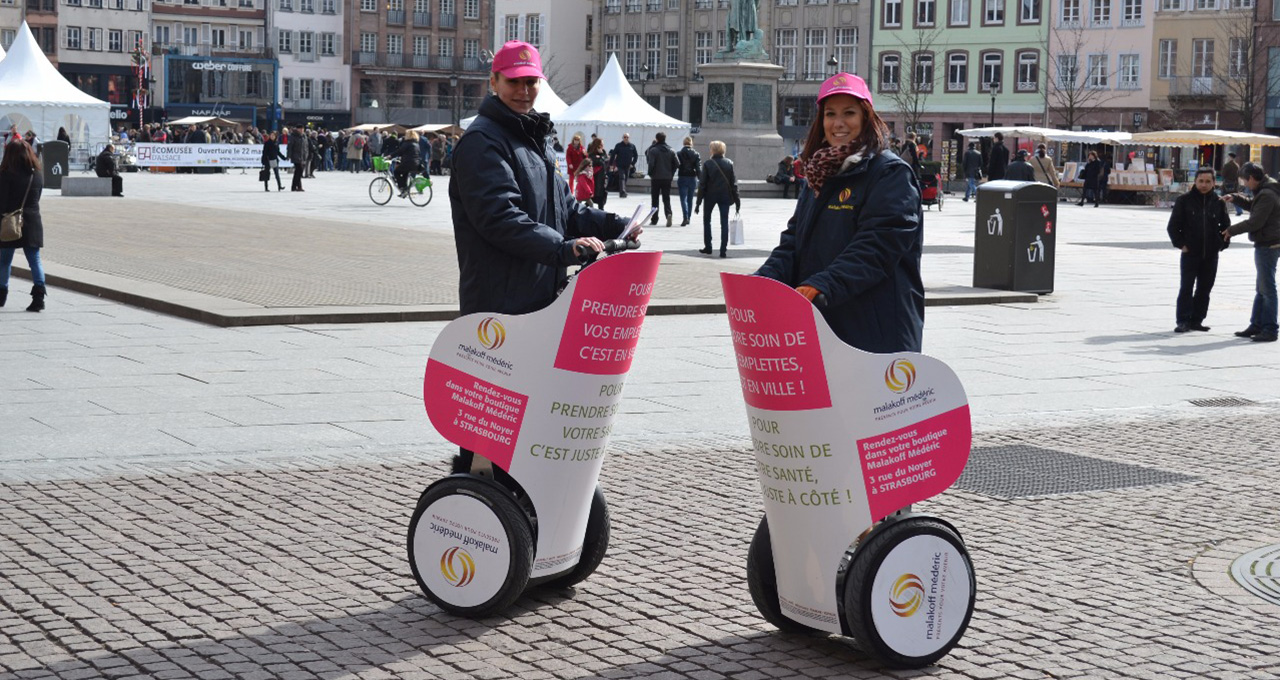 Circulant à la vitesse du pas sur les trottoirs et les voies piétonnes, LE SEGWAY vous ouvrent de nouvelles opportunités pour toucher votre public dans ses lieux de vie : cœur de ville, galeries marchandes, salons, larachetival, bords de plage …