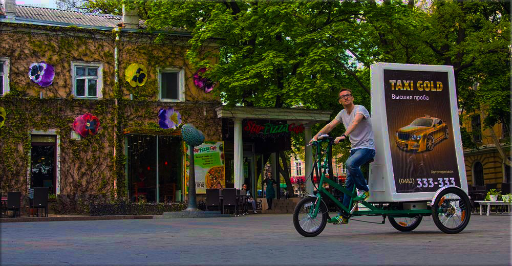 Le Vélo publicitaire vous permet d’aller à la rencontre de votre public de façon originale et vous donne la possibilité de profiter d'un bouche à oreille positif (Buzz), de booster vos ventes, de fidéliser votre clientèle existante et de développer votre notoriété, votre message touche des milliers de consommateurs (600 vues/h), et permet de communiquer là ou les autres médias ne peuvent aller pour un coût inférieur aux autres médias.